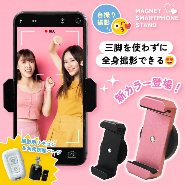 3. 【楽天ランキング1位獲得】本体&角度調節パーツ&リモコンセット!!三脚無しで全身自撮りできる!マグネットスマホスタンド