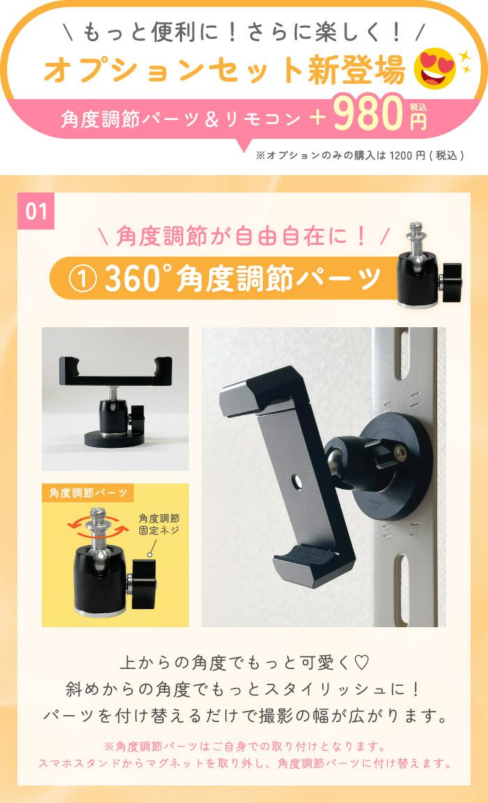 楽天NO.1 SNS話題【三脚無しで全身自撮りできる!】 角度調節パーツ&リモコン(本体なし)